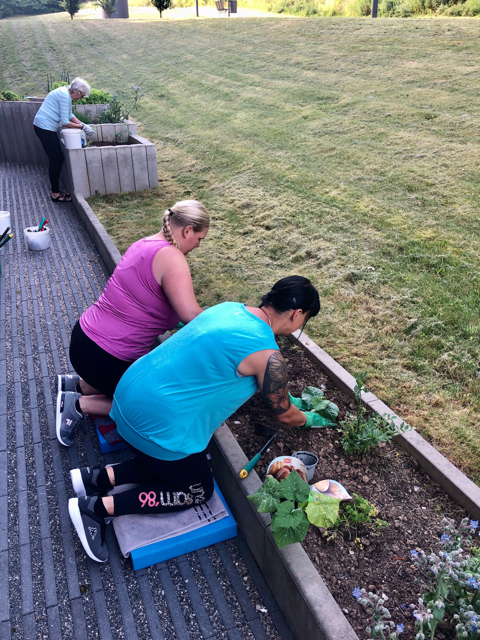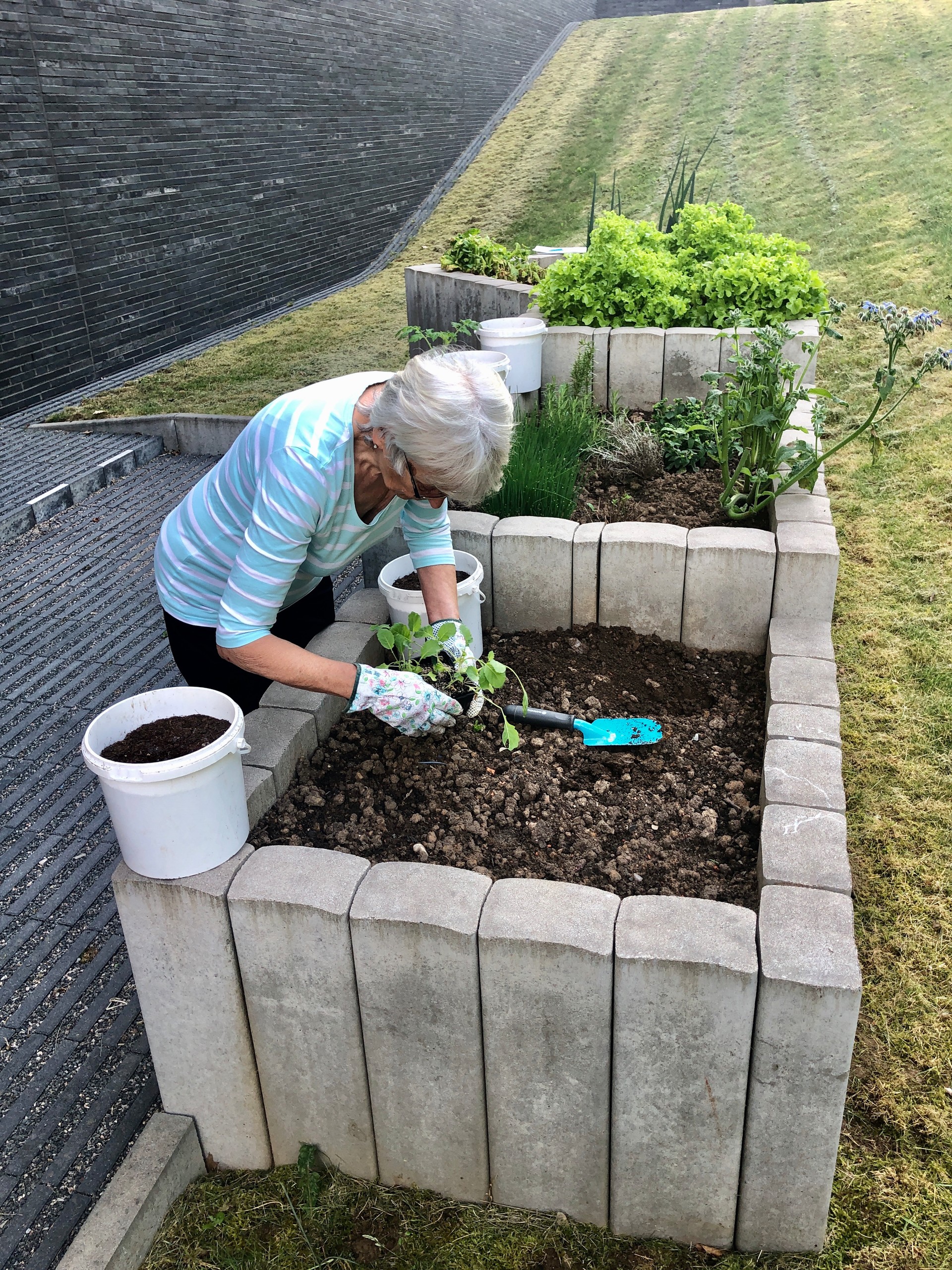 Therapie-Garten im Aussenbereich; hier pflanzen wir frisches Gemüse für unsere Lehrküche an