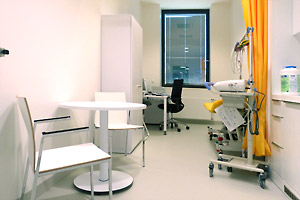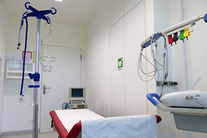 Notfallzimmer mit Notfallkoffer, Defibrillator, EKG